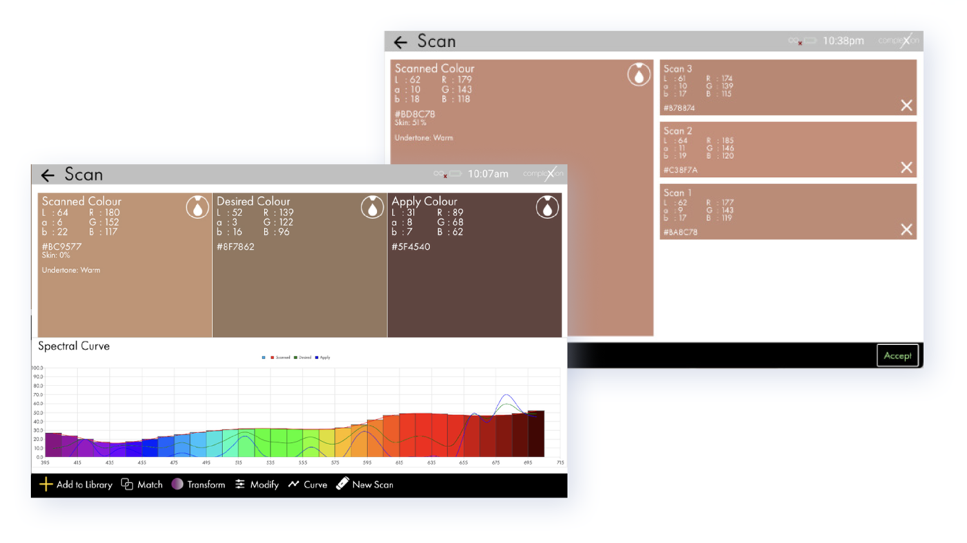 CompleXion measures reflectance accurately across the full visible light spectrum (400-700nm), using multiple illuminants